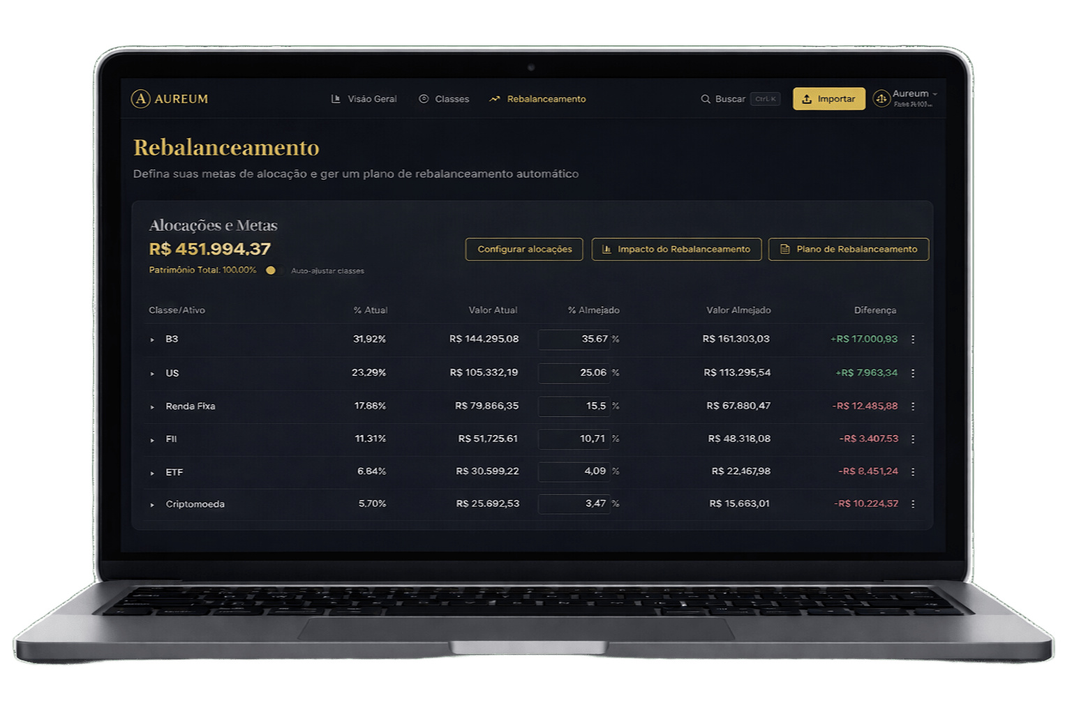 um plano de rebalanceamento com as movimentações necessárias